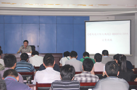 市規(guī)劃院院長賀玉龍傳達了“省《規(guī)范》GB50016-2014宣貫培訓”精神,并與參加省宣貫培訓的胡自立、崔睿、李文成、沈光紅、陳潔、密齊峰六位同志一起,分別從規(guī)劃選址、平面布局、規(guī)劃和建筑工程設計等側重點,就新老規(guī)范的變化、新規(guī)范中的總則、術語和符號、廠房和倉庫、甲乙丙類液體及氣體儲罐(區(qū))和可燃材料堆場、民用建筑、建筑構造、滅火救援設施、消防設施、電氣、供暖通風和空氣調節(jié)等方面的重點內容,向與會人員進行了傳達和講解。