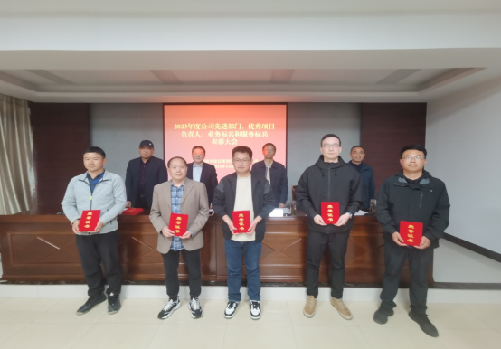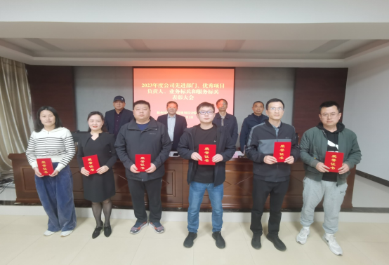 根據(jù)會(huì)議議程,公司董事、副總經(jīng)理王士才同志宣讀了《關(guān)于表彰2023年度公司先進(jìn)部門、優(yōu)秀項(xiàng)目負(fù)責(zé)人、業(yè)務(wù)標(biāo)兵和服務(wù)標(biāo)兵的決定》,公司領(lǐng)導(dǎo)給獲得表彰的先進(jìn)部門、優(yōu)秀項(xiàng)目負(fù)責(zé)人、業(yè)務(wù)標(biāo)兵和服務(wù)標(biāo)兵頒發(fā)獎(jiǎng)牌和獲獎(jiǎng)證書。