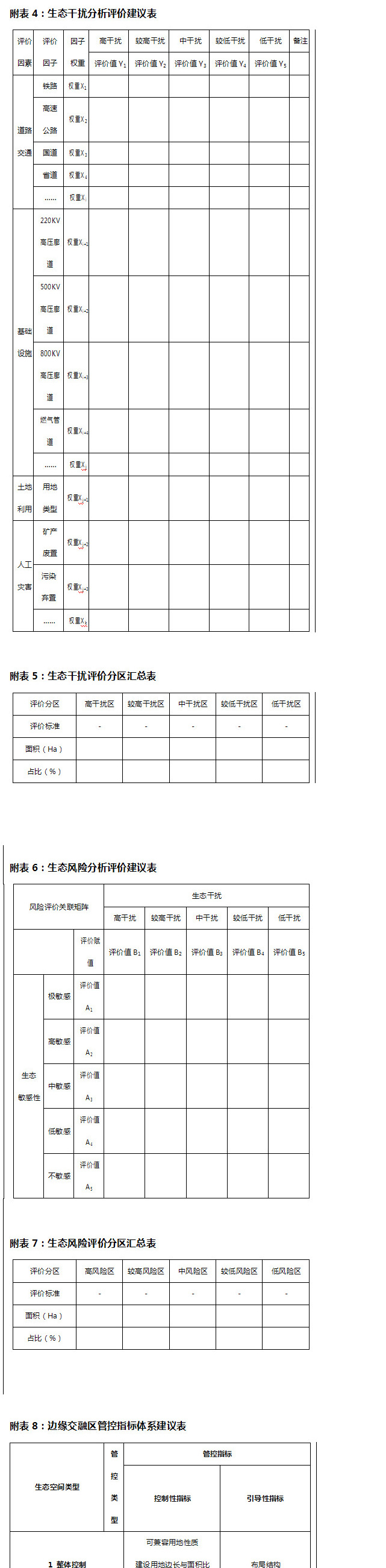 (7)附表包括生態(tài)空間用地分類統(tǒng)計表、管控指標體系表及建設(shè)項目庫表等匯總表或統(tǒng)計表。