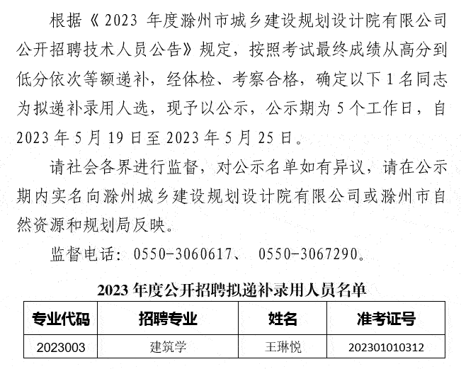 2023年滁州市城鄉(xiāng)建設(shè)規(guī)劃設(shè)計(jì)院有限公司